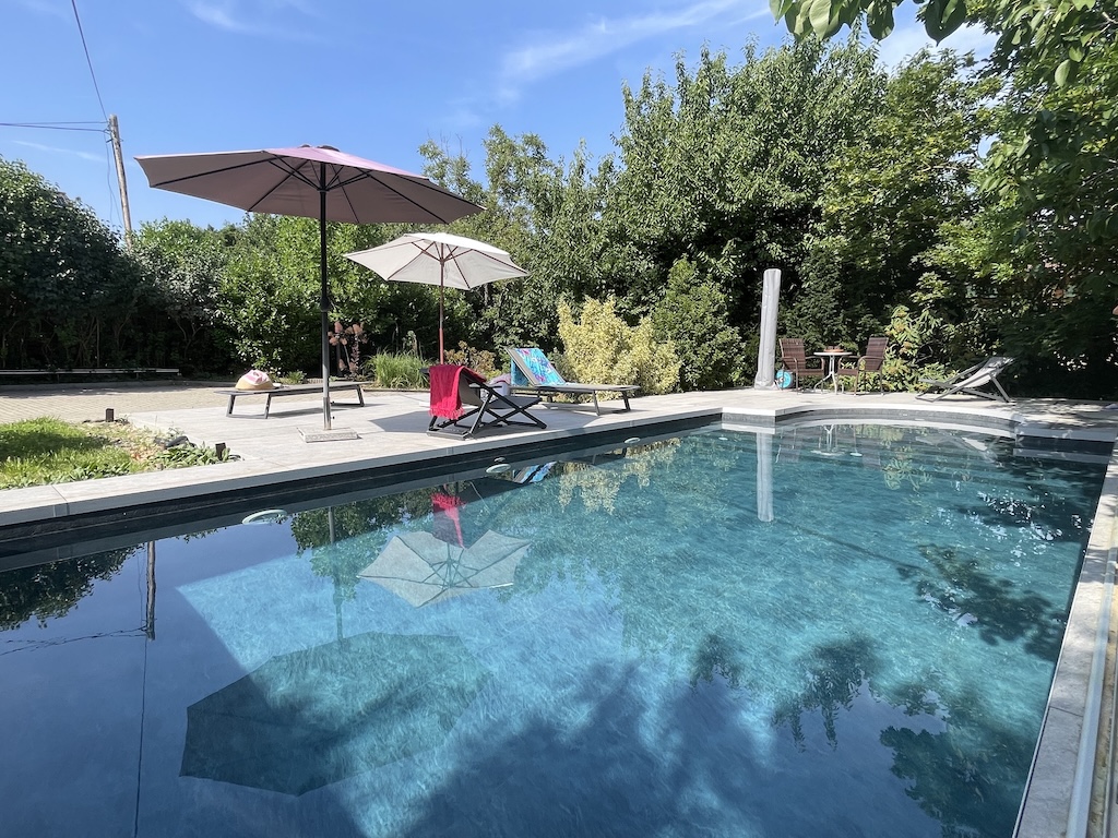 A 900 nm-es területen található: fedett autóbeálló, fűthető, ellenáramoltatható, szabályozható medence, kerti zuhany.